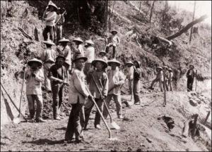 En 1864, alors que la faillite menace la Central Pacific, la compagnie embauche des milliers de travailleurs chinois venus se réfugier aux États-Unis pour fuir la famine qui frappe la Chine au même moment. Charles Crocker, qui s’occupe alors des recrutements, voit vite l’intérêt qu’il a à faire sienne cette main-d’oeuvre captive, à peine arrivée sur le sol américain, jugée par lui inébranlable du fait qu’elle aurait « construit la muraille de Chine ». Les travaux peuvent alors reprendre, et ils avancent à une vitesse bien plus soutenue grâce à ces milliers de bras qui fournissent une force de travail qui ne coûte presque rien à la Central Pacific. Ces ouvriers sous-payés et dépourvus de possibilités de revendication dorment toutes les nuits sous des bâches sommairement installées, ne sont nourris que de riz et exploités jusqu’à la moelle sans mot dire. Leurs supérieurs n’hésitent pas, lorsque cela est nécessaire, à les envoyer au casse-pipe : à coup de nitroglycérine et de dizaines de morts, les Chinois sont employés pour percer des tunnels à travers les Rocheuses, notamment dans une falaise de granit, réputée insurmontable, surnommée le « Cap Horn ». Nombreux sont ceux qui, parmi ces immigrés chinois, ne touchèrent jamais leur solde et laissèrent leur vie à la construction des infrastructures d’un pays impitoyable.