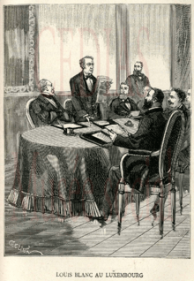 Il apparaît qu’une fois accomplis la révolution de février 1848 et le renversement de Louis-Philippe, ce sont les mêmes personnages qui se retrouveront aux rênes du nouveau gouvernement, les mêmes qui en mars nommeront habilement Louis Blanc à la tête de la Commission du Luxembourg (et surtout pas au ministère du Travail qu’il réclame), chargée de réorganiser le travail en France mais sans aucun budget, et donc sans aucune marge de manœuvre réelle. Alors à la tête du gouvernement provisoire, Alphonse de Lamartine, l’aède des Méditations poétiques, l’homme de Février, celui qui proclame la République mais refuse de l’associer au drapeau rouge, écrit dans son Histoire de la Révolution de 1848 : « Philosophes ou sophistes, aventuriers d’idées, ces hommes la plupart honnêtes, convaincus, fanatiques de leurs propres chimères, s’étaient lancés par l’imagination plus loin que le monde social ne porte les pieds de l’homme. » Plus loin, il déclare : « Louis Blanc, suivi d’Albert, circulait et pérorait aussi dans ces groupes. Son nom était alors immensément populaire. Il réunissait sur lui le double prestige du parti politique extrême que lui donnaient ses relations avec la Réforme et ses doctrines socialistes sur l’association. Ces théories fanatisaient les ouvriers par des perspectives qu’ils croyaient tenir enfin à la pointe de leurs baïonnettes. » On ne saurait guère être plus clair sur les sentiments et le mépris qu’inspirait Louis Blanc à ses camarades de 48.