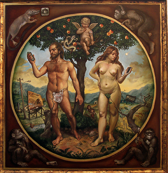 Je ne sais combien de fois j’ai entendu dire « la peinture est so passé [ringarde, ndlr] » et, pour moi, cela sonne aussi ridicule que « lire des livres imprimés est so passé ». N’importe quel obsédé de l’art contemporain méprisant le passé devrait se voir rappeler que ce qu’on nomme « art contemporain » existe depuis environ un demi-siècle et qu’il émane entièrement de traditions antérieures, que ce soit en réaction contre elles ou par expansion à partir d’elles. Le fait que nous vivions un âge d’images mouvantes, avec une si grande importance accordée à la « valeur-choc », rend d’autant plus réactionnaires le dessin et la peinture. L’image fixe et silencieuse d’un dessin ou d’une peinture semble transmettre son information à une fréquence différente de l’écran de nos médias de masse. Cette « fréquence » exige de s’accorder un moment de paix, à la fois intérieure et par rapport au monde extérieur, de façon à comprendre et à assimiler une image en deux dimensions, créée « organiquement », qui nous relie à nos origines humaines et à nos racines spirituelles. Les formes traditionnelles de peinture et de dessin sont donc automatiquement en contradiction avec la reproduction mécanique et froide d’images en mouvement rapide évoquant le « choc et la stupeur », mais qui poussent rarement la transcendance vers d’autres dimensions que celle du simple règne physique. La controverse et le scandale en art reflètent avec acuité la médiocrité des médias de masse. Aujourd’hui, de nombreux grands musées et d’importantes institutions d’art louangent et valorisent des œuvres d’art tout aussi nombreuses, sans qualité et sans contenu, les considérant comme des exemples très raffinés d’art contemporain. C’est aussi creux et culturellement inconséquent que l’émission Ice Road Truckers de la chaîne de télévision History, ou Here Come Honey Boo Boo, de The Learning Channel, ou n’importe quelle autre chaîne qui prétend éduquer le public mais le nourrit de la même camelote. On étudie de nombreux exemples d’art provocateur en école d’art, qui sont loués comme des parangons de l’art contemporain (mais j’ai intentionnellement oublié leurs noms). Ce n’est simplement pas ce qui m’intéresse. L’art ne devrait pas être une recherche du choc et du scandale pour capter l’attention et correspondre à quelques critères de l’art contemporain ; il ne devrait pas suivre les dernières tendances des magazines d’art et répondre aux attentes et partis pris qui nous sont imposés sur ce que l’art contemporain devrait être. Il devrait simplement tendre à un travail bien exécuté, honnête et intemporel.