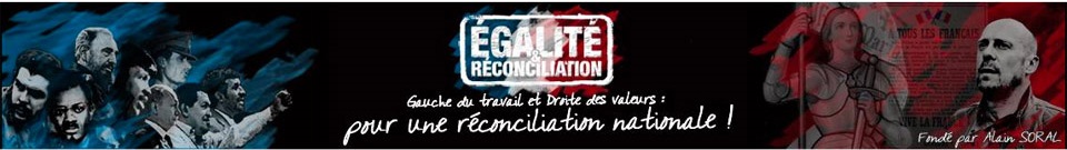 • Sur leur idéologie en effet, je la trouve plutôt pertinente, je parle ici des 6 discours de Soral : – discours de Valmy ; – du communisme au nationalisme ; – quelle alternative au monde bourgeois ? ; – gauche du travail droite des valeurs ; – politiquement incorrect ; – à l’ombre du minaret en flamme. Je pense que la Gauche du travail et la Droite des valeurs est une bonne réponse à l’alliance libéral-libertaire. C’est dans la continuité du Cercle Proudhon, du CNR ou d’Orwell « anarchist-tory. » Après je ne dis pas qu’il faut adhérer à ER moi-même je ne suis pas membre, ce que je prône c’est plus une convergence d’esprits que d’associations.