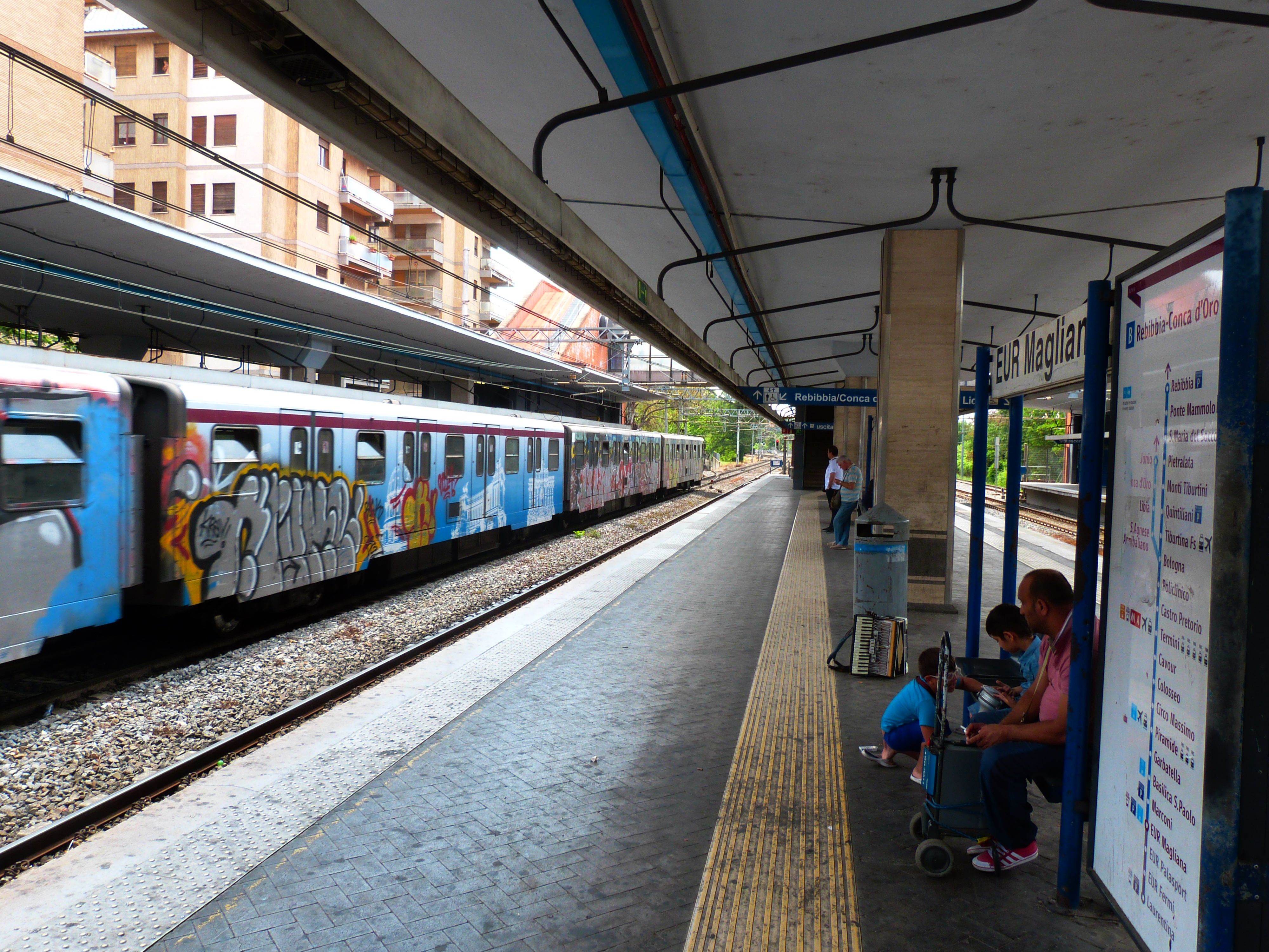 Mon petit périple démarre sur le quai de la gare. Les graffitis sur les quelques wagons à l’arrêt amènent un peu de couleur. Sur un banc, un père et ses deux fils patientent avant d’embarquer dans une rame.