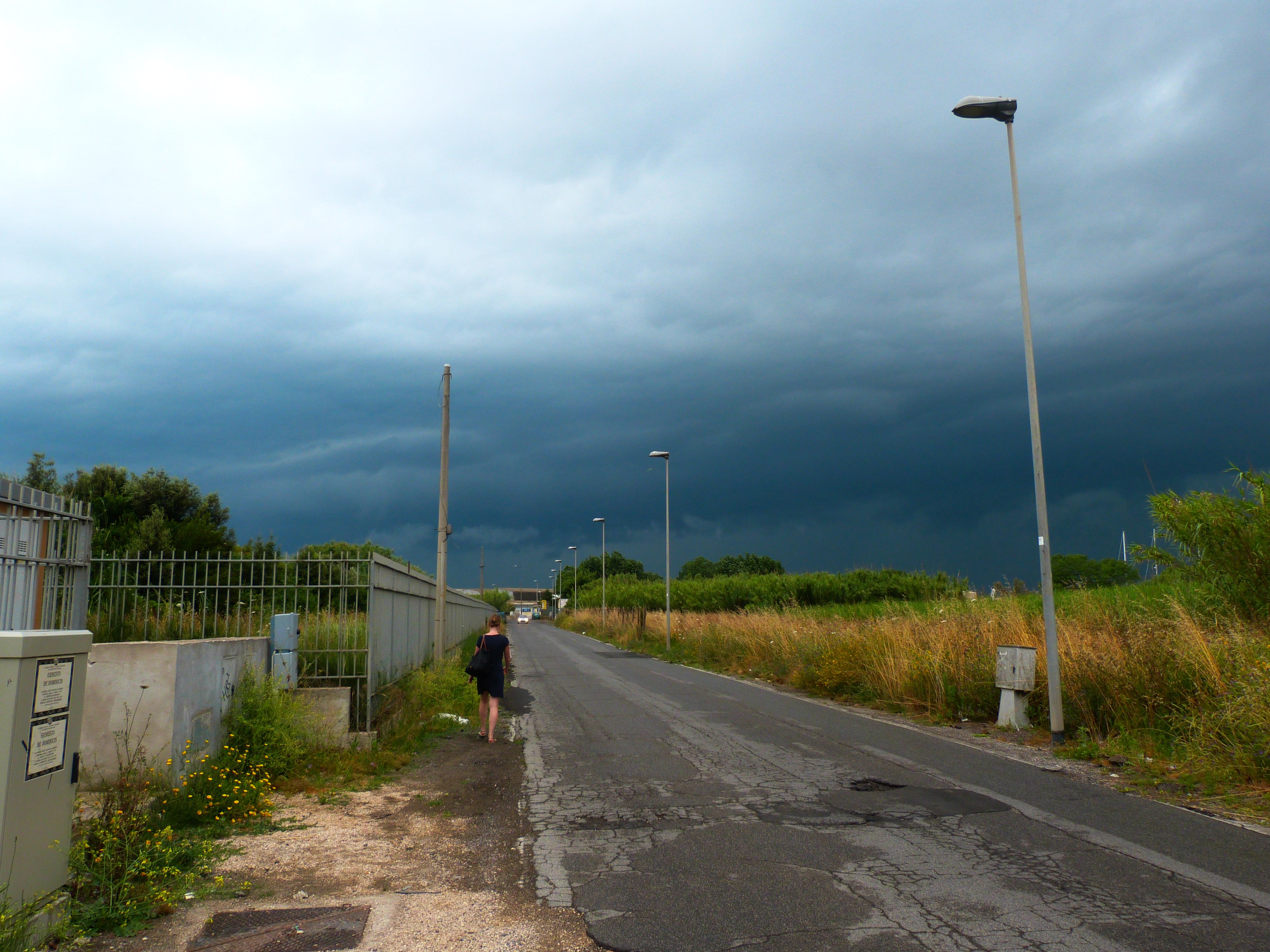 Après m’être trempé les pieds dans l’eau claire mais fraîche, je poursuis mon chemin jusqu’au port touristique de Rome dans la partie ouest de la ville. Une sorte de port du Crouesty en plus grand et avec un McDo en prime. Les forêts de parasols et les emballages de burgers jonchant les trottoirs donnent un bel exemple de ce fascisme de la consommation tant dénoncé par Pasolini. Un rapide échange de passes avec quelques gamins tapant le ballon permet aussi de faire le lien avec le grand amateur de foot.