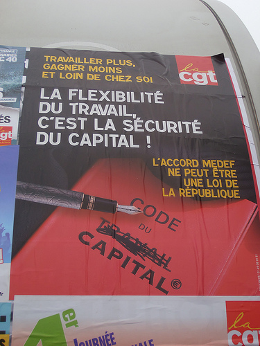 « En mettant l’ensemble des travailleurs sur le pied de l’égalité face à l’instabilité, on crée une concurrence sans égale, où chacun devra se partager les quelques miettes du gâteau de la richesse laissées par les capitalistes. »