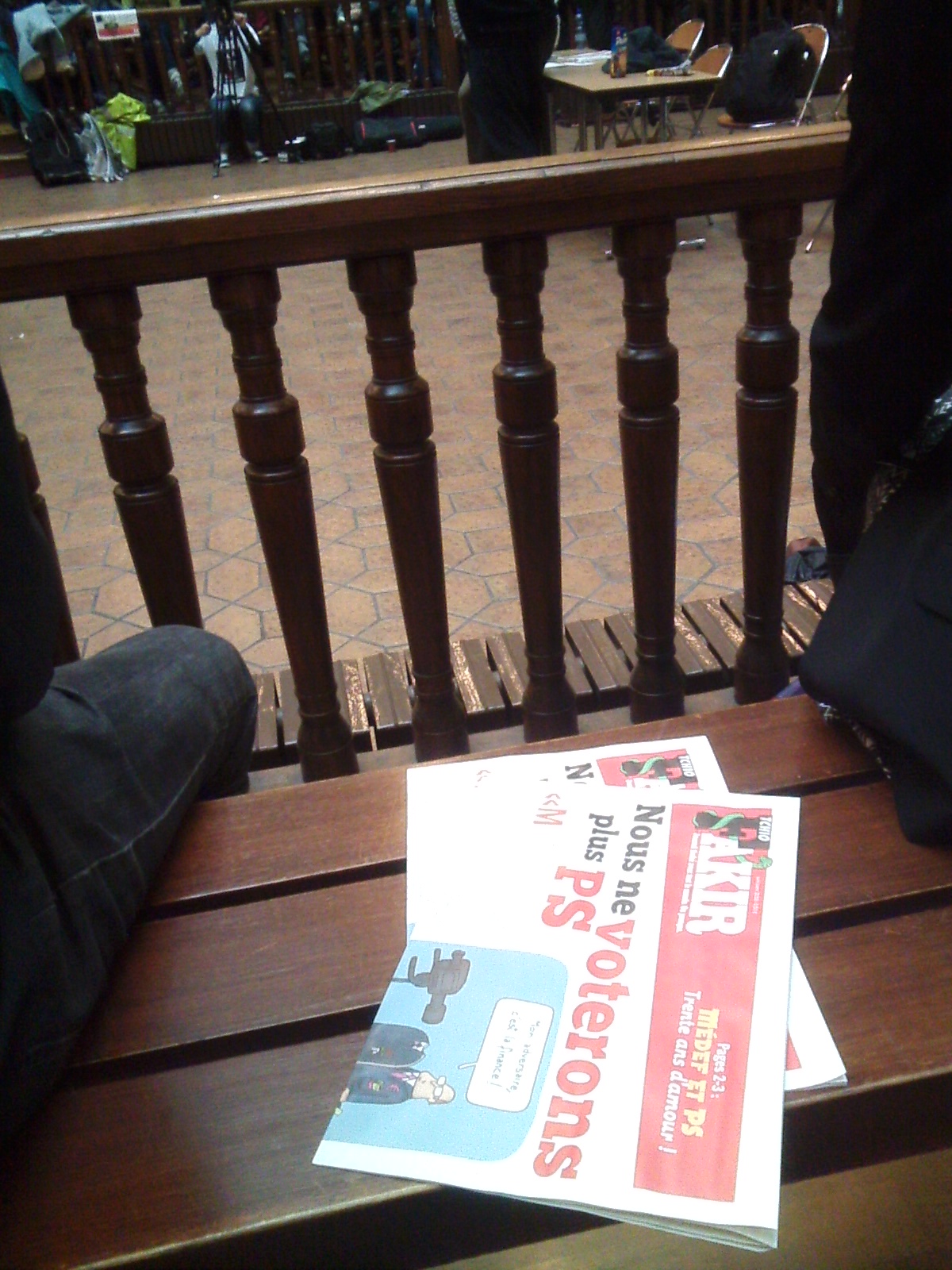 Ce soir-là, je suis passé à la Bourse du Travail où se tenait la conférence « Nous ne voterons plus PS » organisée par le journal Fakir, en présence notamment de François Ruffin, Christine Poupin, Gérard Mordillat et – paradoxe ? – de Gérard Filoche. Il s’agissait de faire un bilan collectif de la mobilisation contre la loi El Khomri trois mois après son lancement, et de fixer un plan de bataille et des échéances afin de préparer, notamment, la manifestation du 14 juin. Syndicalistes, écrivains, journalistes et militants se sont succédé pour donner leur point de vue : tous étaient d’accord pour parler d’une mobilisation historique très populaire et sur la nécessité de mener des actions diverses – blocages, production médiatique alternative, tractages – pour soutenir l’élan.