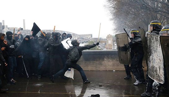 Etrange comme idée de penser que le fait de se cogner avec la police et de casser des vitres fait avancer la révolution. Pourquoi ne pas frapper les véritables responsables? Les ministres, les députés et autres élus corrompus, les membres des conseils d’administration des multinationales etc. Il faut sortir de l’infantilisme politique qui de fait, renforce le système.