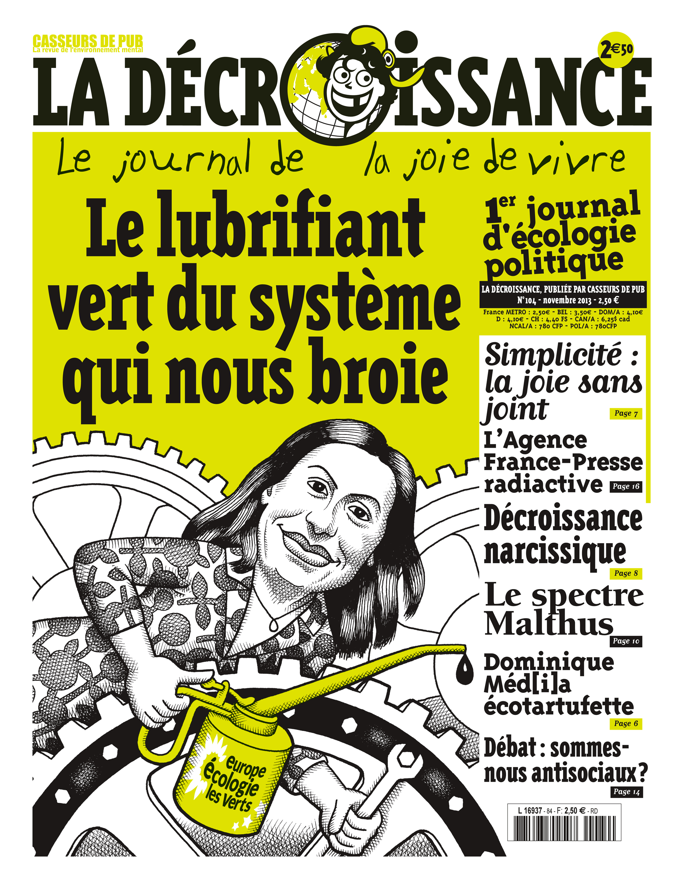 Pierre Thiesset : Je peux difficilement répondre à ces questions, je suis journaliste à La Décroissance, je ne suis pas un Lénine qui chercherait à organiser les troupes pour prendre le pouvoir. Vous me dites que les “décroissants” sont très divisés, mais nous ne cherchons pas l’union des masses. Au contraire, nous avons l’habitude dans notre journal d’être critiques et de prendre des positions à contre-courant qui ne plaisent pas à tout le monde. Deux exemples récents : alors que certains “objecteurs de croissance” fondent leurs espoirs et leur projet politique sur le revenu de base, nous avons largement démonté cette idée ; et, quand un million de personnes s’émerveillent devant le film Demain, nous, nous dénonçons l’entourloupe et nous affirmons que la décroissance n’a rien à voir avec la troisième révolution industrielle portée par Jeremy Rifkin ou la “transition énergétique” censée avoir lieu à La Réunion – alors que l’île est sous perfusion de pétrole et toujours plus vouée au tout-bagnole… Nos analyses sont loin de nous attirer que des amitiés, mais nous ne cherchons pas à être consensuels. Nous pensons que les clivages sont sains.
