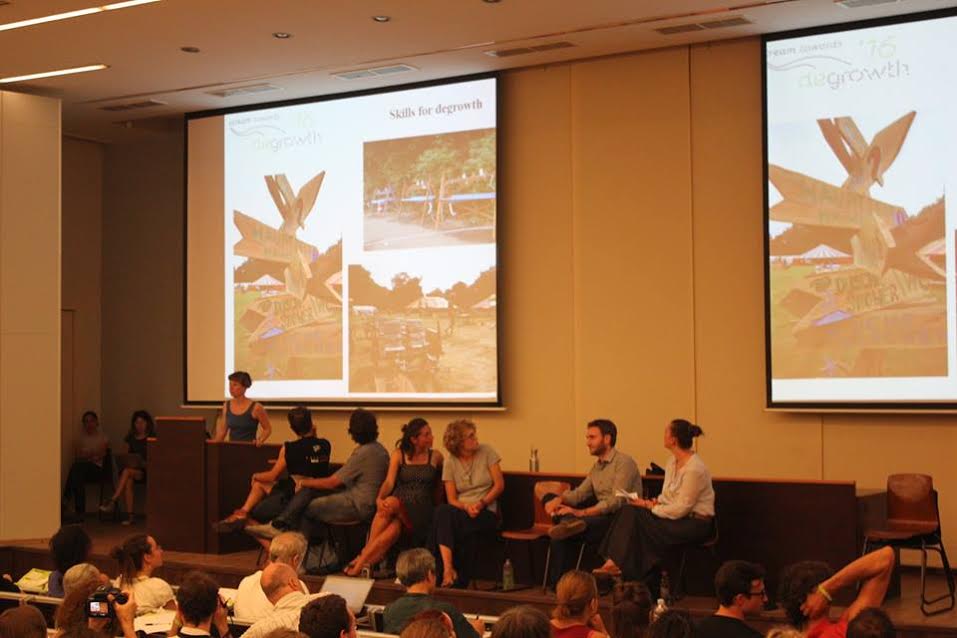 La session spéciale organisée par Matthias Schmelzer m’a permis de revoir une vieille connaissance des réseaux français, Anne-Laure Pailloux qui a présenté ses travaux sur le cas français. Elle posait la question « qui sommes-nous ? » Interrogation récurrente s’il en est, au moins autant que les questionnements sur le terme décroissance. Lors de ce débat ouvert, plusieurs points de vue ont été débattus, notamment avec Giorgos Kallis, Federico Demaria, mais convergeaient tous sur cette affirmation : la décroissance est une pensée “parapluie” qui crée des liens entre différents mouvements complémentaires. Plus que jamais, je soutiens que la décroissance est un réseau s’appuyant sur des empêcheurs de penser en rond, dans une démarche radicale d’alliances et de recherche de cohérence.