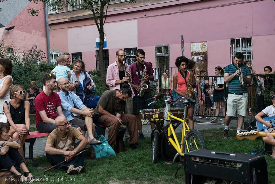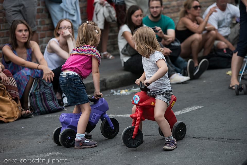 Comment éviter les reconstructions de clans, les replis, qui ont été nécessaires face au stress et à la charge de travail, notamment dans les dernières semaines ? Il n’a pas toujours été évident de laisser de la place à toutes et tous, entre les équipes françaises et les autres, les derniers arrivés, les décisions devant se prendre rapidement en hongrois. Mais la confiance donnée et la patience nous ont offert des moments de créativité et d’union uniques, magiques, représentés en particulier par le festival de rue sans voiture en clôture de la semaine !