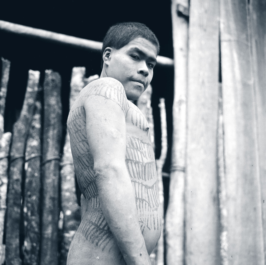 Jeune Aché (le nom des Guayaki en langue guayaki) arborant ses peintures corporelles, Arroyo Morotí (la “réserve” guayaki), 1963