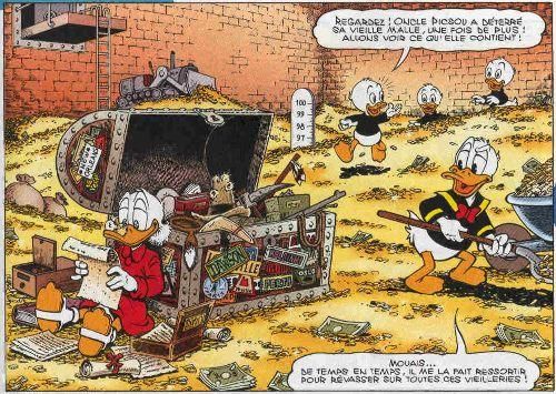 Picsou est très souvent considéré comme la personnification du capitalisme triomphant, l’emblème du self-made man américain, la figure type du multi-milliardaire radin assis sur son tas d’or. Pourtant, Don Rosa a dévoilé la véritable signification du coffre-fort de Picsou en le remplissant non pas d’argent mais de souvenirs : une « arche du rêve enfoui », un « réceptacle insoupçonné de merveilles de la mémoire, d’images précises d’océans, de découvertes, de visages et de voix, attachés à telle pièce, telle partie de trésor, telle liasse de billets. » Une façon de réhumaniser le mythe sans le subvertir ?