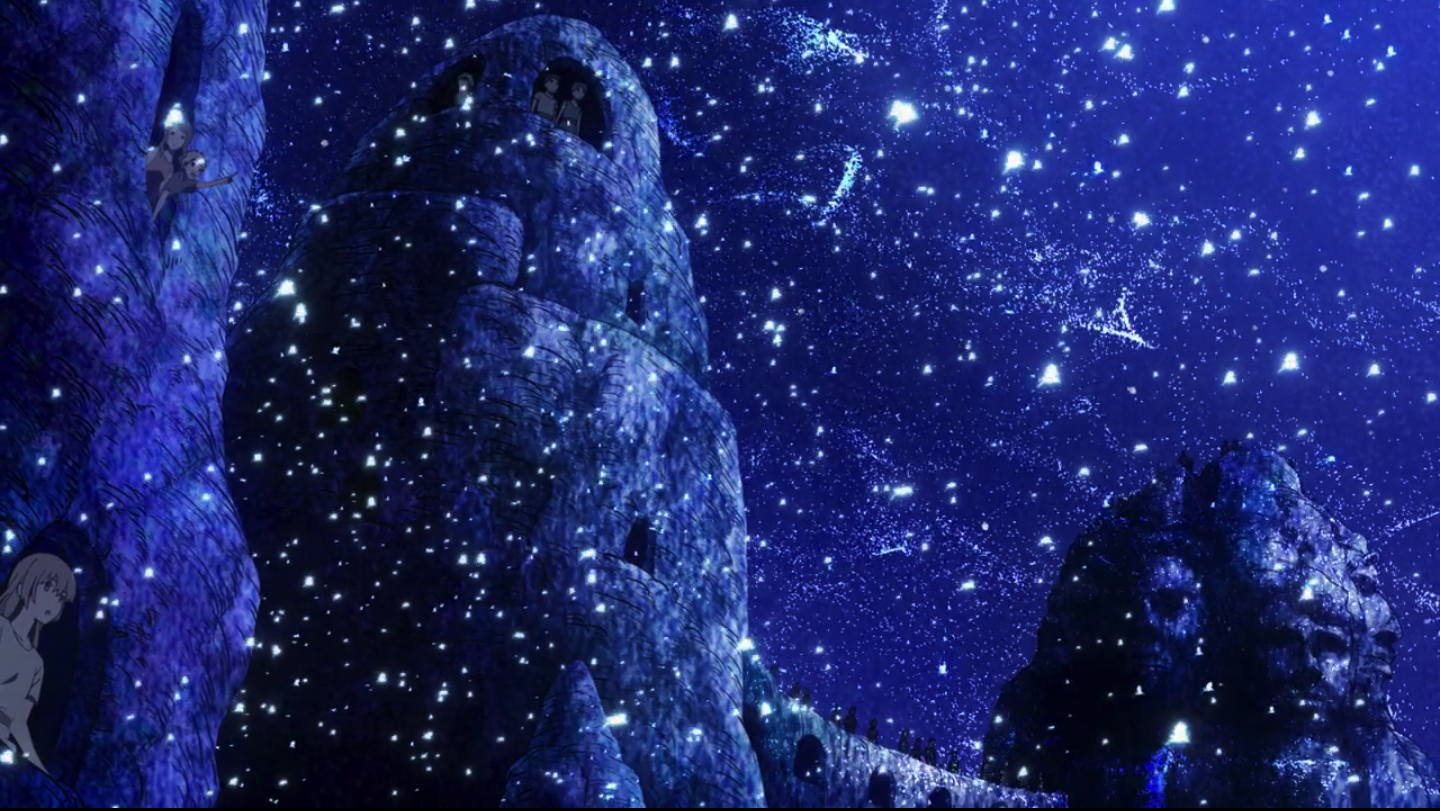 L’empathie constitue un autre point d’articulation de cette odyssée cosmique, une empathie sacrée, fondée sur la dissolution de soi et la fusion à l’altérité radicale. Ainsi, dans l’épisode 8, Chukuro pénètre la mémoire de son ennemi, Leodari, et décide de l’épargner. Le réveil du daimonas de la phaleina, Ohni, créature engendrée par le noûs lui-même par l’intermédiaire de l’âme du monde, conduit le jeune homme et sa compagne Lycos au cœur du vaisseau ennemi, deuxième vision mémorable, à l’instant précis où celui-ci se désagrège comme un masque brisé de l’intérieur, dont jaillit une jungle foisonnante. Des milliers de mains y fleurissent jusqu’à l’engloutissement de Skylos, appelé à se résorber tout entier dans la mer de sable, regressus ad uterum.