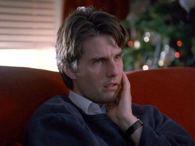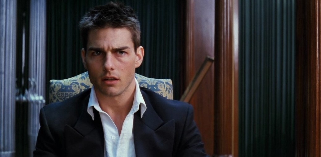 Cruise n’aura cessé de prendre à revers les rôles qui ont fait sa gloire, mais c’est bien souvent un trompe l’œil. Il y a dans la majorité des personnages incarnés par l’acteur une ambiguïté qui en contrarie la lecture : Cruise n’incarne jamais véritablement des gens biens (comme Tom Hanks par exemple, qui devait d’ailleurs originellement joué Jerry Maguire), mais des gens qui essaient d’aller mieux. Et avec Risky Business et son invitation au lâcher prise, l’archétype cruisien découvre que les conditions de son bonheur résident peut-être dans sa folie intérieure. Aussi, l’obsession de la réussite et la tentation de la folie deviendront chez lui les deux faces d’une même pièce que ses premiers films s’emploieront à faire tournoyer, avant que les années 90 et l’inévitable transition vers des rôles « matures » ne viennent interroger et remettre en question cette vanité. Cruise cesse alors d’être ce petit prodige prêt à tout pour arracher sa part d’american dream (Risky Business, Top Gun, La Couleur de l’argent) et se transforme progressivement en icône cinématographique de l’insatisfaction masculine (Jerry Maguire, Eye Wide Shut, Magnolia).