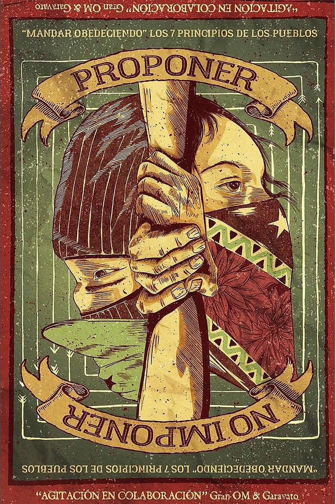 Avec le cri « Tierra y liberta » [« Terre et liberté »] poussé dans les années 1910 par Emiliano Zapata qui reprenait lui-même les termes de l’anarchiste Florés-Magon, les indiens zapatistes se placent dans la filiation de 500 ans de résistance indigène en terre colonisée. Cette lutte, comme son nom ne l’indique pas, est un appel adressé au monde entier afin de s’opposer au capitalisme dans le cadre de la guerre que celui-ci mène contre l’humanité. Mais, loin de se cantonner au refus du capitalisme, le mouvement zapatiste s’attèle aussi à construire une autre société que celle, marchande, dont le Capital et ses sbires gouvernementaux ont besoin pour prospérer.
