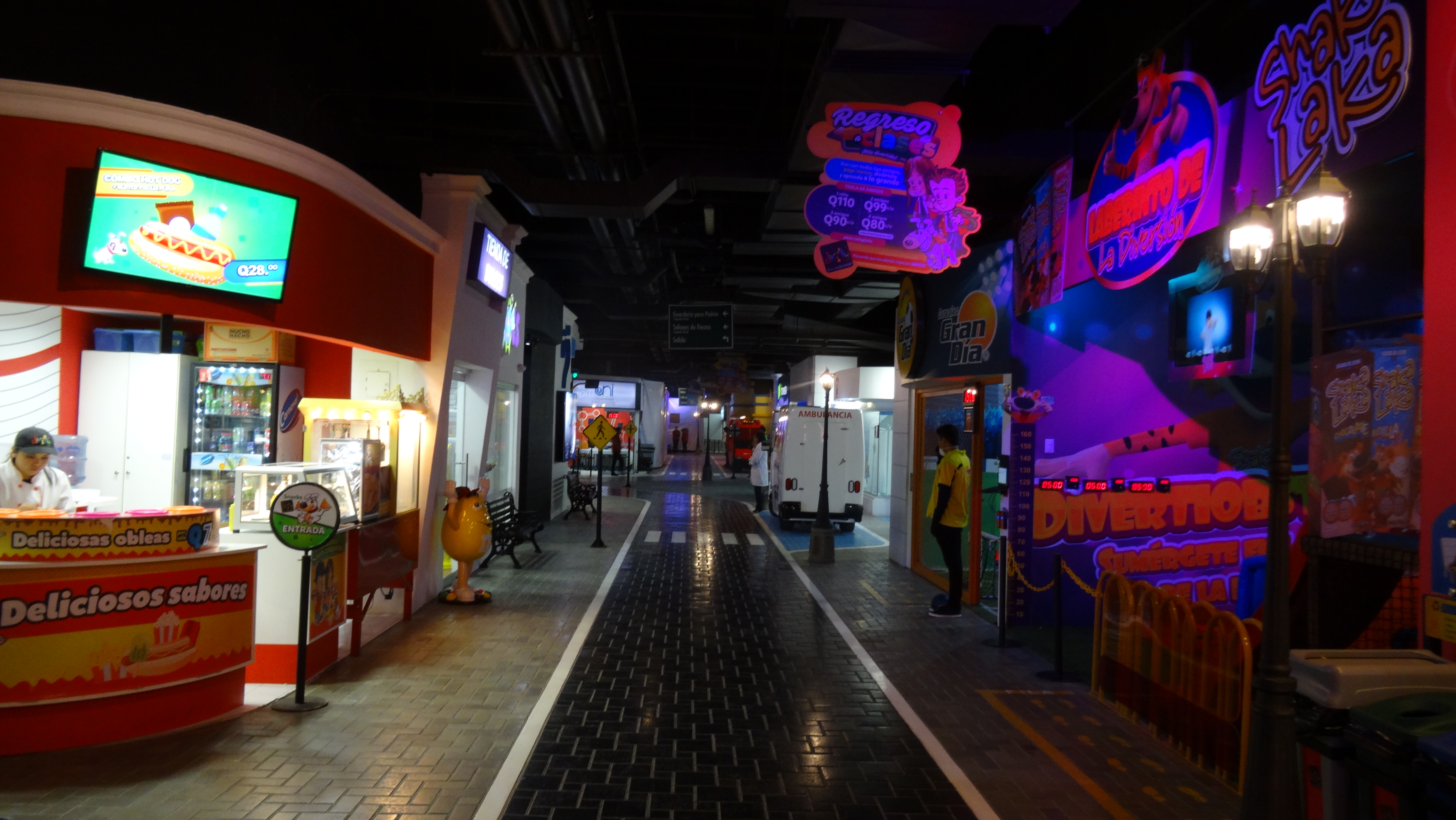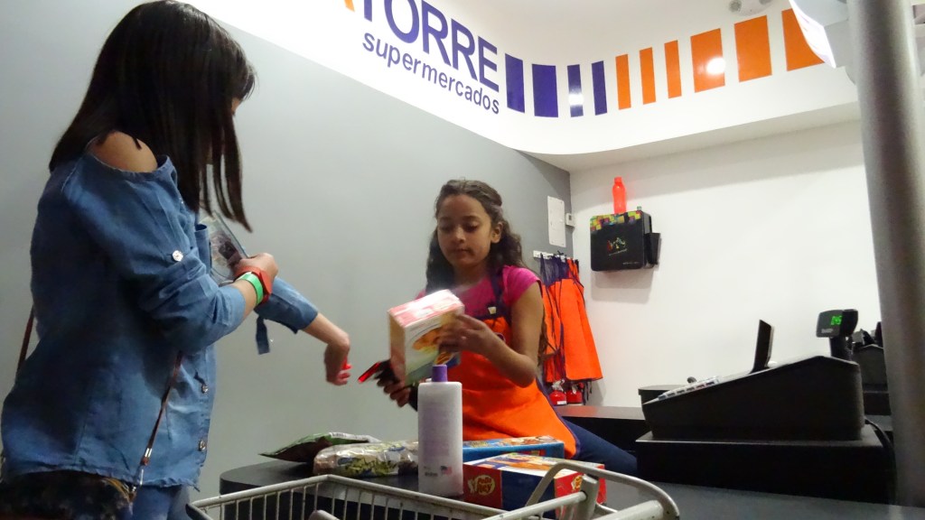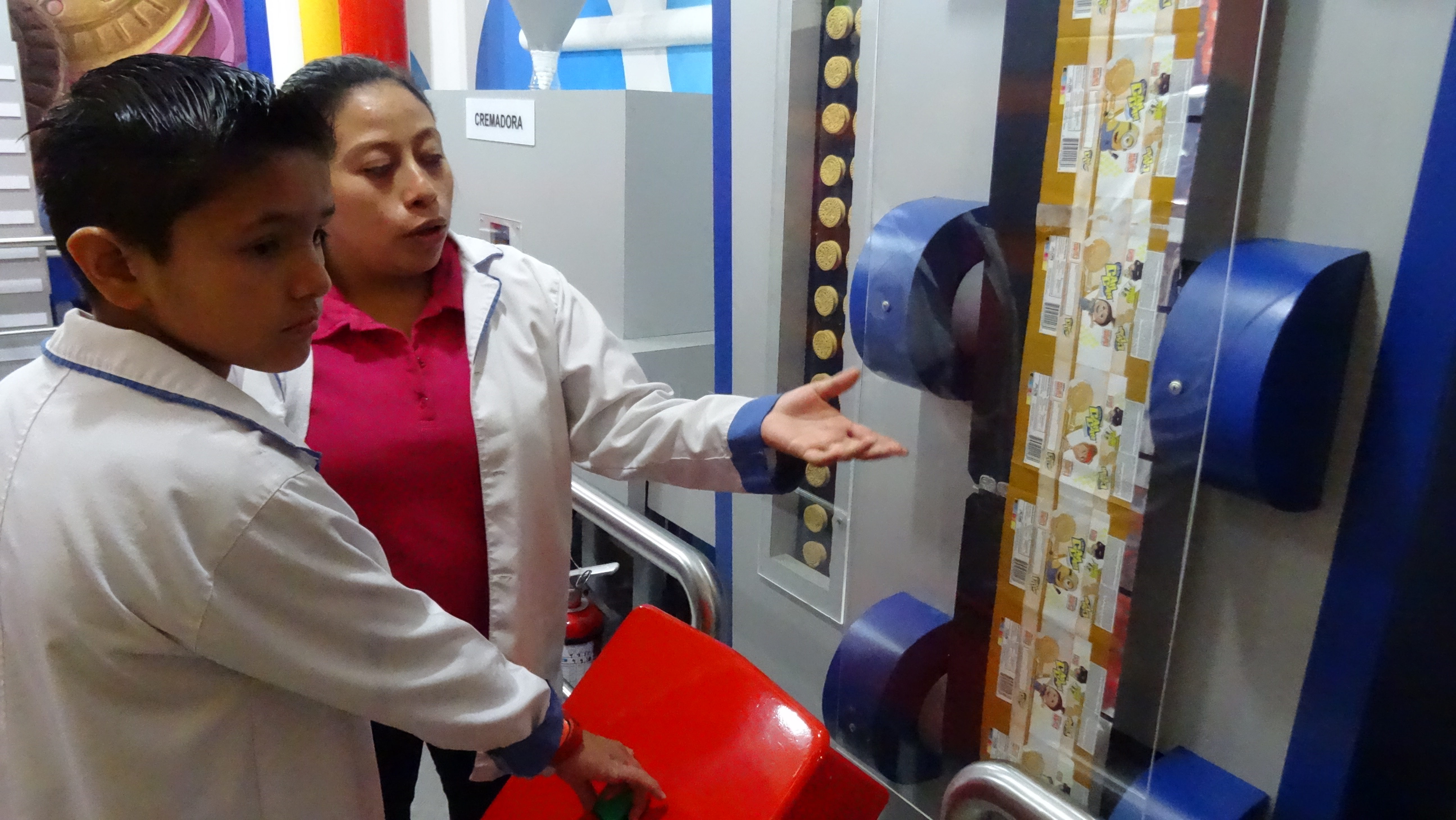 « ¡Buenas noches! », salue l’ingénieure qui fait visiter l’usine de fabrication de biscuits. Étape après étape, des mécanismes reproduisent le circuit de la matière brute au produit emballé. Pas aussi attirant que les activités-phares (les pompiers, l’ambulance, le terrain de football…), l’espace n’accueille qu’un seul enfant. Guère enchanté par l’expérience, il manipule docilement les leviers des machines aux couleurs vives, tandis que l’animatrice récite son explication du processus de fabrication des « délicieux biscuits Can Can », un produit du groupe Molinos Modernos, branche alimentaire du groupe Multi-Inversiones. Et, remettant un sachet en cadeau au jeune visiteur vaguement blasé, l’ingénieure de conclure en rappelant : « Can Can nourrit ton imagination ».