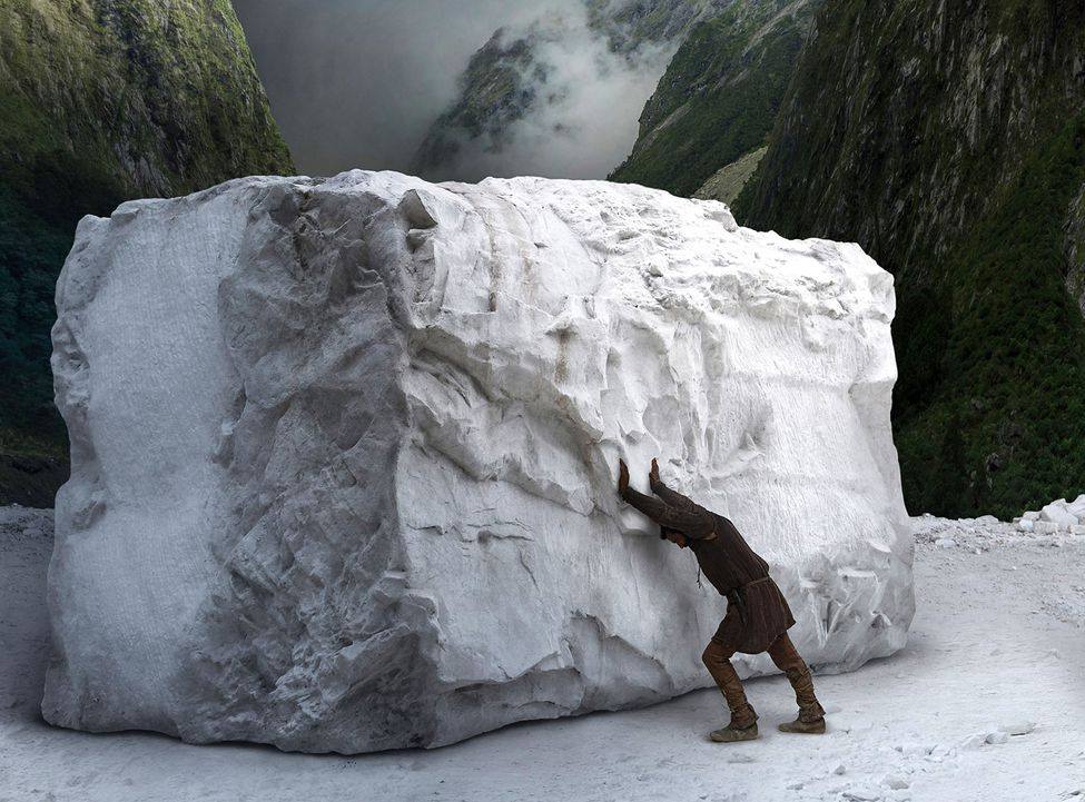 Arrivé à la carrière on touche au cœur du film. Jetant son dévolu sur un « monstre » (un bloc de marbre immaculé si massif que même les ouvriers en appréhendent le transport), Michel-Ange dévoile la démesure de ses obsessions artistiques en même temps que sa folie égoïste. Pour réaliser son chef d’œuvre, il n’hésite pas à mettre en danger la vie des carriers, à trahir ses amis et à s’attirer les foudres de ses mécènes. Car, au-delà du problème d’indépendance artistique vis-à-vis du pouvoir politique et d’une misère financière qui le suit comme un chien galeux, Michel-Ange est dépeint comme un exalté colérique, menteur et cynique. La prestation hallucinée Alberto Testone y est pour beaucoup. Sans doute que Konchalovsky a mis un peu de son propre orgueil dans ce portrait peu flatteur. Reste que, dans un même élan titanesque et insensé, le tour de force de la descente – réelle – du monstre de la carrière, rappelle celle – tout aussi réelle et éprouvante – de l’ascension du bateau dans le Fitzcarraldo de Werner Herzog (1982) en pleine forêt amazonienne.