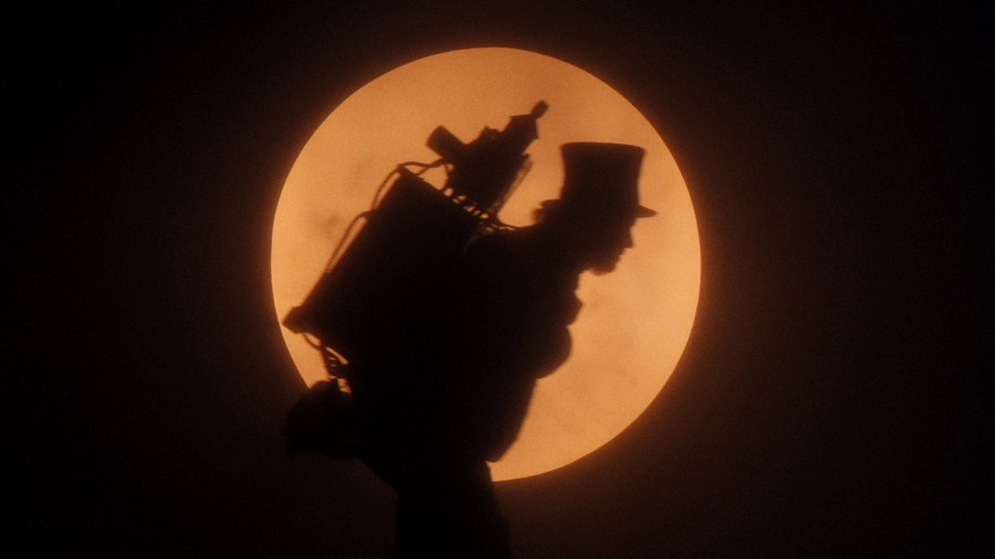 Fasciné par les machines de projection antérieures au cinéma, Bill Douglas était un collectionneur obsessionnel de lanternes magiques et autres praxinoscopes. Ce n’est pas un hasard si c’est un lanterniste itinérant qui ouvre et clôt (d’une certaine manière) le récit et en est le narrateur. Le titre original du film ne laisse place à aucune ambiguïté : Comrades, a Lanternist’s Account of the Tolpuddle Martyrs and What Became of Them (“Camarades, ou le récit d’un lanterniste sur les martyrs de Tolpuddle et ce qu’il advint d’eux”). Le lanterniste, joué par Alex Norton, est un transformiste hors pair : il interprète également le photographe Gaviotti (un des premiers photographes de l’ère victorienne), l’émissaire qui donne à un garçon un disque pivotant montrant un oiseau dans une cage, le sergent Bell et sa boîte optique éclairant la duplicité du pasteur, le présentateur du Diorama qui propose un voyage aux antipodes, le silhouettiste français qui découpe le portrait de l’aristocrate en tranchant net la tête… Au total, plus d’une douzaine de rôles tissant le fil rouge de la narration entre les différents personnages principaux du film (martyrs, familles, aristocrates). Dans un style tout en finesse, Bill Douglas fait ainsi coïncider l’émergence du mouvement ouvrier avec celle du spectacle animé.