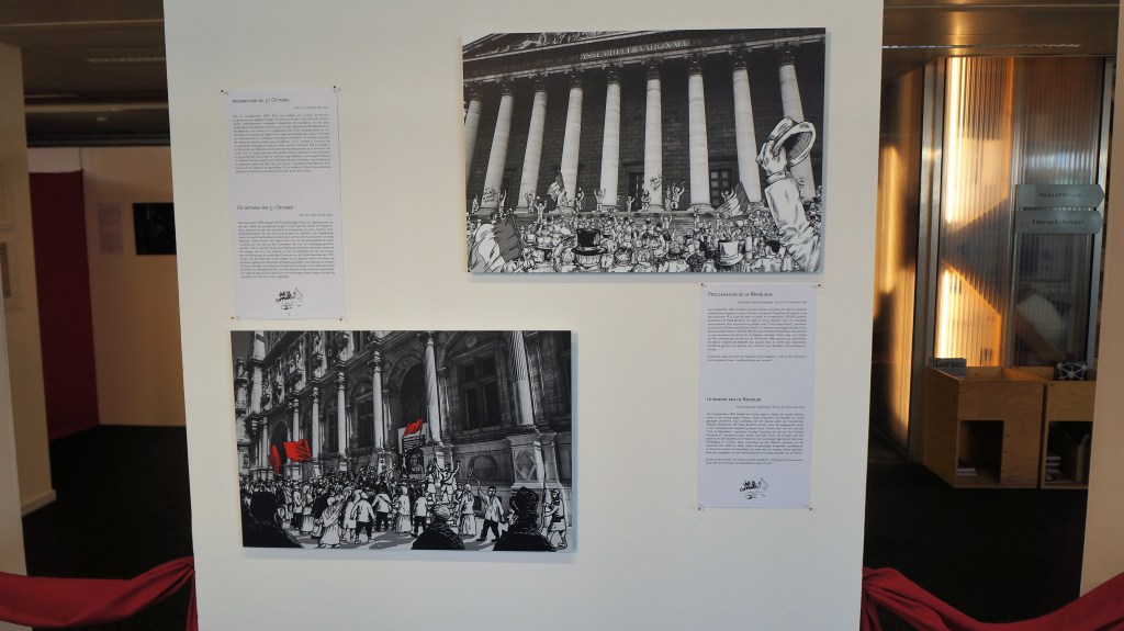 Le collectif qu’on a créé sur ce concept s’appelle « Never forget », il a pour principe de se rappeler des luttes passées et il y aura plein d’histoires à venir : d’abord il y a eu les Black Panthers, là c’est sur la Commune, ensuite ce sera sur la répression meurtrière de la police française contre les Algériens en Octobre 1961. Cette expo a donc pour objectif de vous plonger dans l’ambiance du Paris communard et de vous faire découvrir ou redécouvrir un épisode important de l’histoire ouvrière et sociale de nos régions.