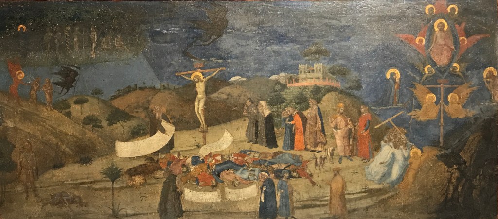 Peut-on y voir les prémices d’une conscience sociale éclairée, au sens où on l’entend dans la tradition du socialisme moderne ? Je laisse bien sûr au lecteur le soin d’en juger, mais je penche pour le oui, dans la mesure où les messages que le peintre adresse à ses concitoyens nous parlent encore avec une actualité confondante et avec un goût d’intemporel. Comme si quelque chose de l’essence même du politique était saisie. Qui, sans le cerner, trace les contours d’un monde de mortels et d’êtres sociaux faisant face à une expérience à la fois fondatrice, édifiante et à la fois ordinaire et ambiguë – les deux murs, en faisant se miroiter les deux visions d’une même réalité, révèlent en deçà de leur opposition un entremêlement, un chiasme. Cité terrestre et cité céleste augustiniennes sont prises ici sous les aspects du monde dans lequel vivent effectivement et concrètement les habitants de la Sienne de 1338, date et lieu en lesquels il semble étonnamment tôt pour un abandon aussi radical des motifs religieux. Mais peut-être a-t-on ici affaire à l’un des quelques chaînons manquants – je veux dire l’un des quelques absolument décisifs dans l’histoire – entre l’imaginaire apocalyptique traditionnel, hérité des textes sacrés, et l’imaginaire utopiste à venir, celui de l’humanisme et des doctrines ultérieures.