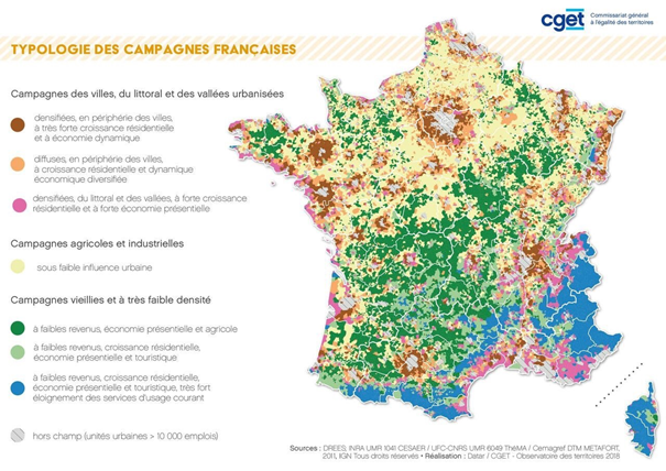 Rappelons tout de même la nécessité d’éviter toute analyse manichéenne sur la pauvreté en France. La tendance est aujourd’hui positive pour les espaces ruraux situés dans l’orbite des grandes villes, près des littoraux, ou dans le quart sud du territoire national : c’est là où les dynamiques démographiques sont les plus encourageantes, du fait d’une volonté de beaucoup de ménages urbains de quitter les villes congestionnées et polluées, pour les campagnes et leurs aménités. Ainsi, nous assistons bien à complexification de la situation sociale dans certains espaces ruraux, avec une arrivée de plus en plus massive de cadres, à haut revenus, dans les villages les plus attractifs en Île-de-France, en Provence ou dans le Pays de Loire. Pour autant, cet apparent « exode urbain » est un arbre qui cache la misère de la plus grande partie des espaces ruraux, en particulier ceux situés dans la partie centrale et nord-est de la France – la « diagonale des faibles densités », anciennement « diagonale du vide » – ou encore dans les territoires ruraux très éloignés des villes. C’est dans ces territoires ruraux que la situation paraît la plus inquiétante, à cause de la faiblesse des investissements privés, et d’une relative indifférence de l’État pour le sort de leurs habitants.