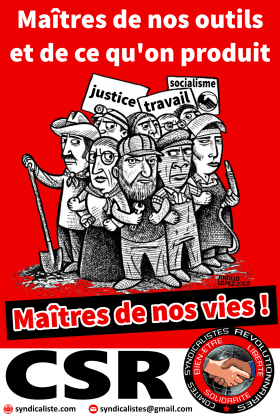 En effet, le SR fut le premier courant ouvrier révolutionnaire du socialisme (en tant que synthèse) à s’être opposé au réformisme et à la social-démocratie de la gauche naissante. Mais au-delà de “se remémorer le bon temps”, nous œuvrons surtout à l’actualisation du SR, en phase avec notre époque. Cela passe essentiellement par l’analyse, la réflexion collective, la formation en lien avec la transmission de savoirs et de savoir-faire, la coordination de pratiques syndicales militantes et, aussi, en impulsant des pratiques culturelles qui ont servi de terreau et de moteur au mouvement ouvrier : fêtes populaires, clubs de sports ouvriers, soutien scolaire, etc.