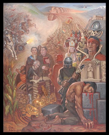 Si, comme Aníbal Quijano, les décoloniaux considèrent la « race » (construction sociale, historique, discursive) comme plus déterminante que la classe sociale, l’exposition montre que les fléaux subis les peuples autochtones ne sont pas seulement liés à celle-ci. N’est-ce pas se tromper que de faire de phénomènes propres au capitalisme et à la forme politique « État » (croissance, avantages comparatifs, utilitarisme, division mondiale du travail, développement, idéologie du Progrès) qui frappent les autochtones mais aussi les non autochtones, une question de race ?