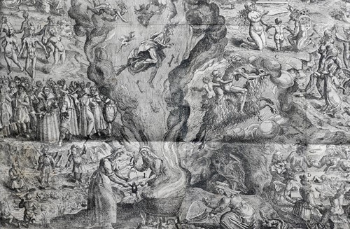 ZIARNKO Jan, « Description et figure du sabbat des sorcières », 1613, gravure sur cuivre. Pour la première fois au XVIIe siècle, dans le contexte de la chasse aux sorcières, apparaît le cliché de la vieille femme sur son balai.