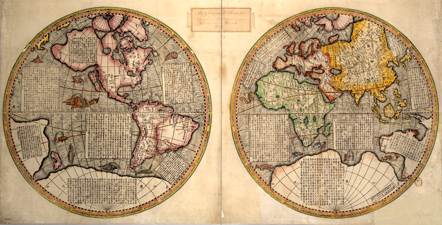 « Carte complète du monde » (Kunyu Quantu) pour l’empereur Kangxi, par Ferdinand Verbiest, 1674 © BnF