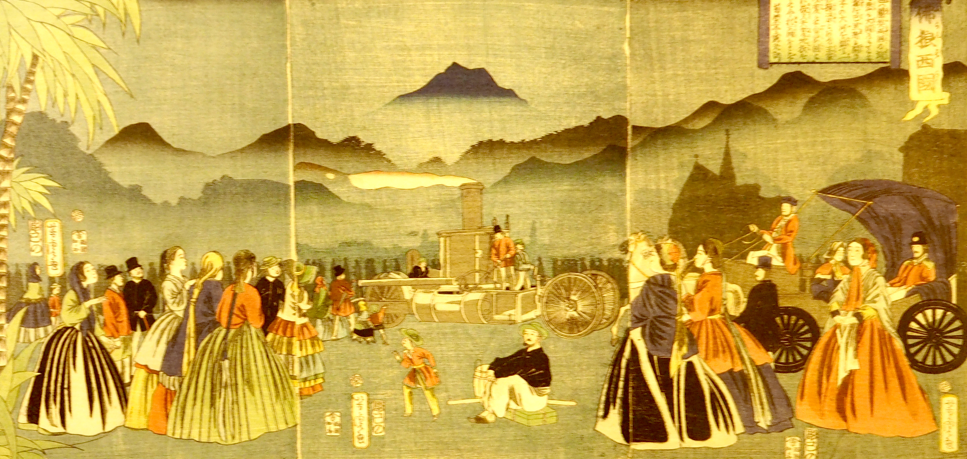 Les rencontres avec les Européens qui séjournent en Asie attisent l’imaginaire des artistes et savants asiatiques qui rêvent l’Extrême-Occident, ses paysages, ses monuments ou ses villes. Le passé du monde méditerranéen, du Colisée de Rome sur les mappemondes chinoises aux pyramides de Gizeh ou aux vues de Venise dans les ouvrages japonais, est largement mythifié. Des représentations fantaisistes se développement dans les estampes japonaises. Le dessinateur Utagawa Yoshitora s’inspire des gravures européennes des ouvrages néerlandais et britanniques pour imaginer les paysages de Paris ou Londres.