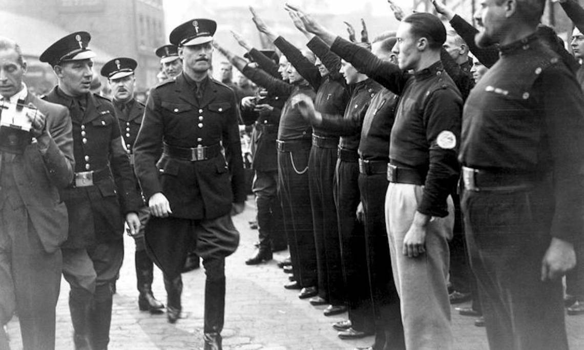 Défilé des membres de la British Union of Fascists devant leur leader, Oswald Mosley (1934)