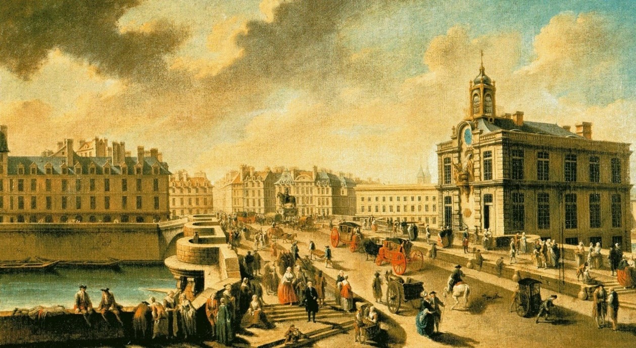 « Le Pont-Neuf et la pompe de la Samaritaine, vus du quai de la Mégisserie », par Jean-Baptiste Raguenet (1777)