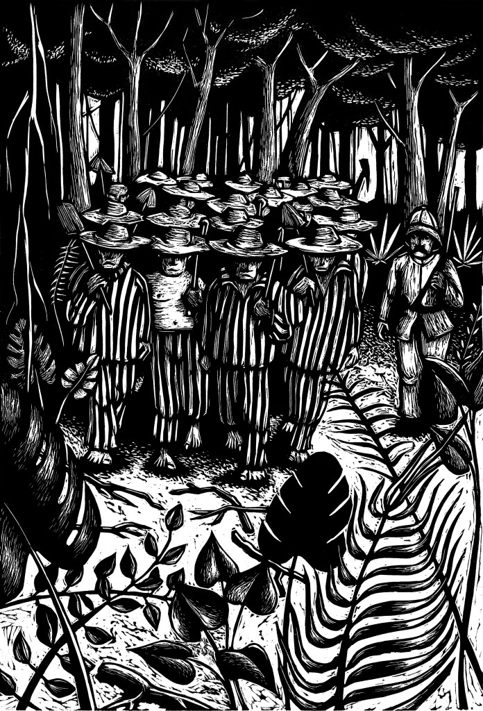 Dans le roman graphique intitulé « L’Incorrigible. Itinéraire d’un bagnard ordinaire » (L’Échappée, 2023), l’auteur, Roland Cros, nous plonge, sans recourir à un seul mot, dans l’histoire fictive de son homonyme, Louis Cros, un Tarnais de la fin du XIXe siècle qui a réellement été condamné au bagne pour deux larcins. C’est à travers 90 gravures que nous suivons son destin, de son premier délit effectué dans le Tarn, à son décès au sinistre bagne de Guyane. Entre 1854 et 1938, ce sont en effet près de cent mille condamnés français ou venus des colonies, qui ont subi le même sort. La fin du XIXe siècle correspond en cela à l’apogée des bagnes coloniaux, c’est-à-dire ces institutions d’enfermement créés sous le Second Empire, avec pour objectif de punir et éloigner de la métropole les indésirables. Pour approfondir notre compréhension de cette œuvre d’art originale, qui nous pousse dans nos retranchements émotionnels et nous interroge profondément sur le sens de l’art, nous nous sommes entretenus avec son auteur.
